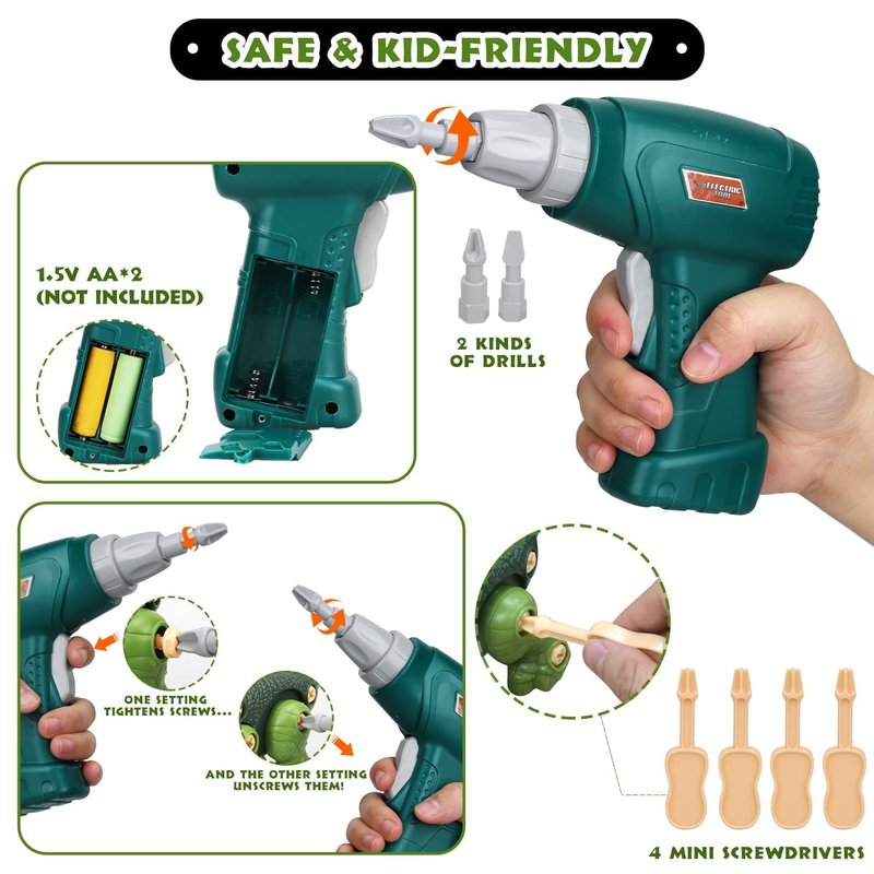 - COMES WITH ELECTRIC HAND DRILL: With some dinosaur take apart toys, it gets frustrating trying to screw in the bolts by hand. The included electric hand drill solves that problem - it’s made of kid-safe plastic, and makes building the dinos easy for smaller hands.