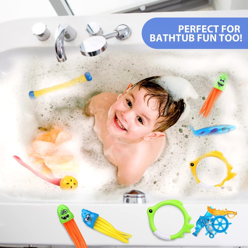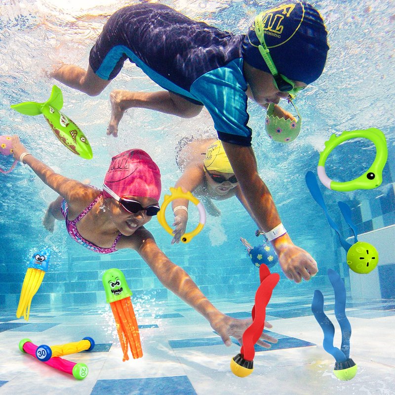 - 🥽 THE POOL IS YOUR OYSTER: Transform the pool into an underwater adventure game with this set of dive toys for pool for kids! With pool rings, swimming fish toys, and a ton of treasures, you can pretend to scavenge for gold while improving your diving skills.
