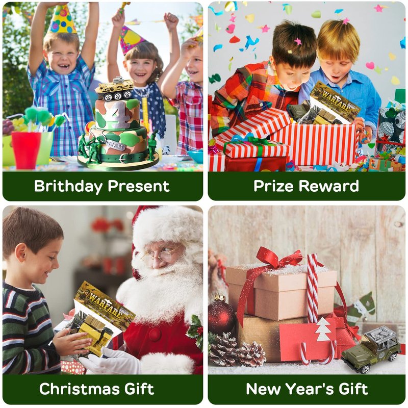- GREAT GIFT - WW2 Soldiers toys for boys girls and adults are fun present for any occasion. birthday, Christmas treats for kids,or any special occasion is the perfect opportunity to gift this toy soldiers plastic army guys to sons, daughters, fathers, mothers, cousins, uncles, aunts, or friends.