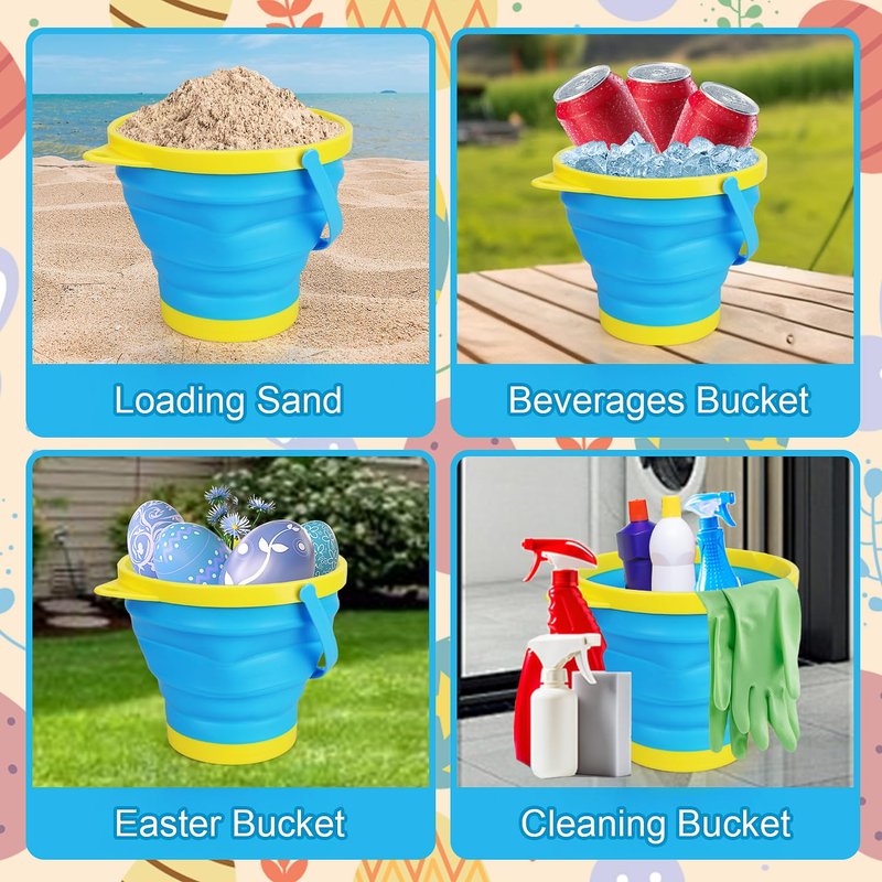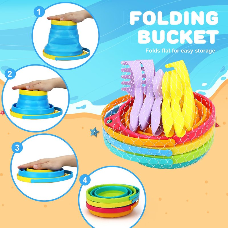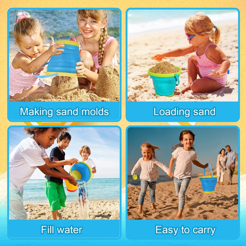 - 🪣MULTI-FUNCTION COLLAPSIBLE BUCKETS - To make your beach trip more light and portable, we use the compressible bucket, reduce the weight of the child can also lift, the sand toy compressible bucket is made of silica gel, soft and not harmful to children. Kids can not only use the bucket for beach fun but also can be used in the daily routine like washing the car, watering the flowers, cleaning the house.