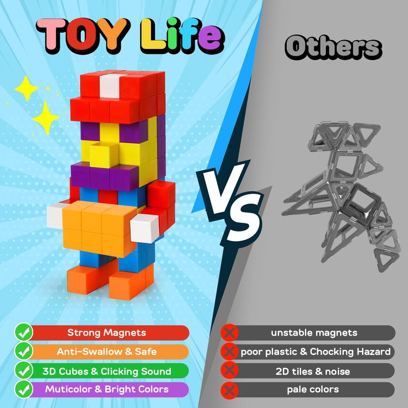 - ๐ TOY LIFE Guarantee: We really care about the experience you have when you purchase our large magnetic blocks. Thatโs why youโre backed by our promise, either you love this toddler magnetic blocks toys , or weโll give back every penny.