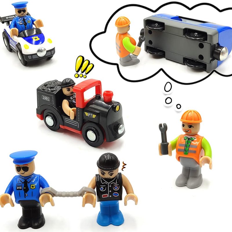 - Include - this listing include 10 pieces different figures(1 Policeman , 2 Policewoman , 1 Gang , 1 Doctor , 1 Nurse , 2 Workers , 2 Firemen , 1 Office Clerk ) + 1 set hand tool ,not include any trains cars track.