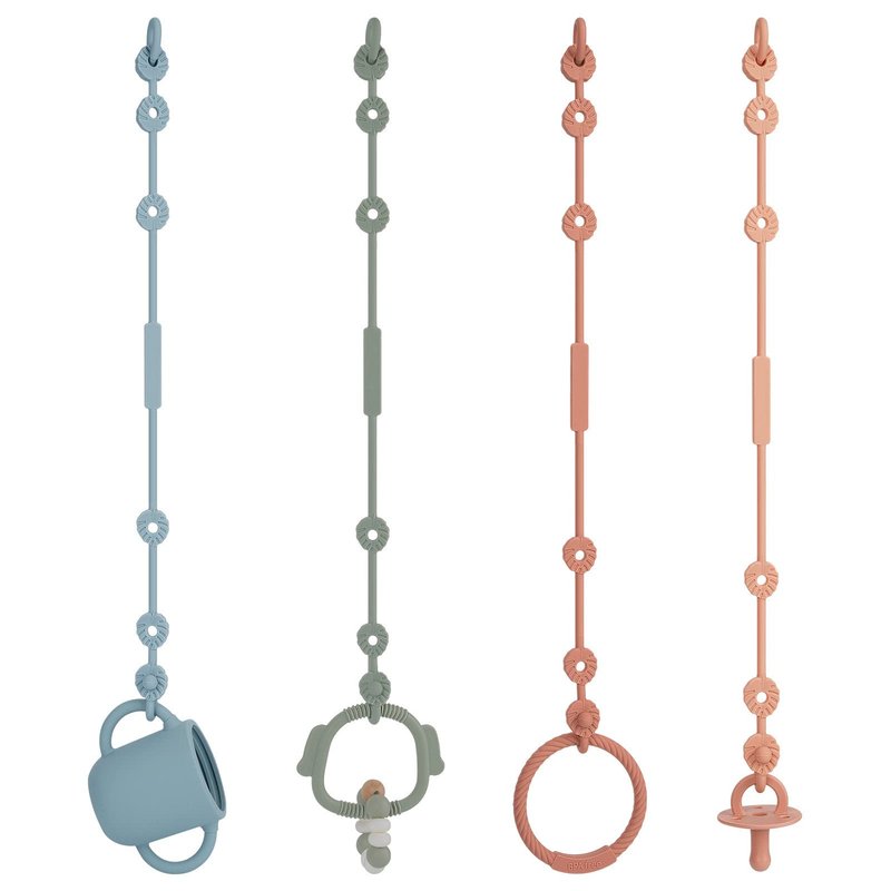 Toy Straps for Baby, Silicone Pacifier Clips Adjustable Stretchable Sippy Cup Straps for Strollers, High Chair, Cribs, Hanging Baskets, Shopping Trolley, Car Seat, Bags (Ether+Sage+Apricot+Muted)