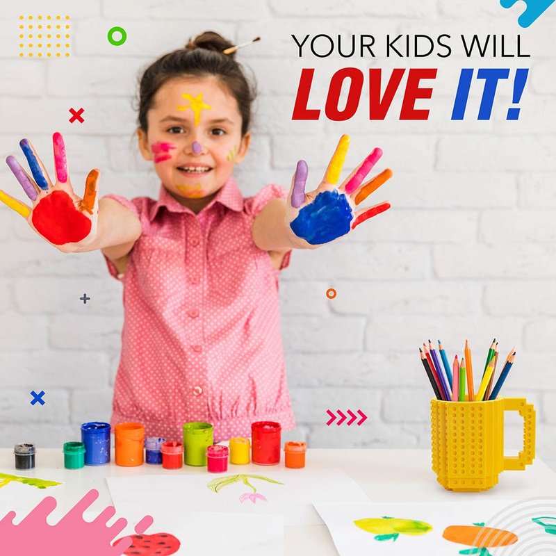 Introducing our premier product, the Build-on Brick Mug, an innovative blend of function and fun. This Compatible with Lego mug is an eye-catching yellow mug designed for both kids and adults. The build on mug, is not just a mug but a creative tool that stimulates children's creativity.