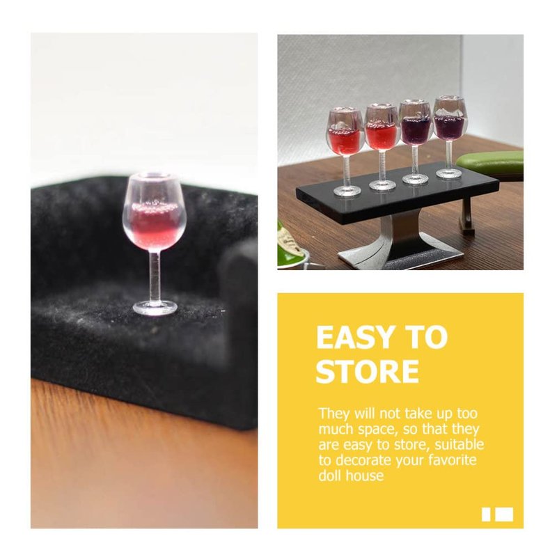 - These miniature wine glasses are made of resin, , , light weight. Dollhouse Any room ( including living room, bedroom, dining room, study, bathroom,