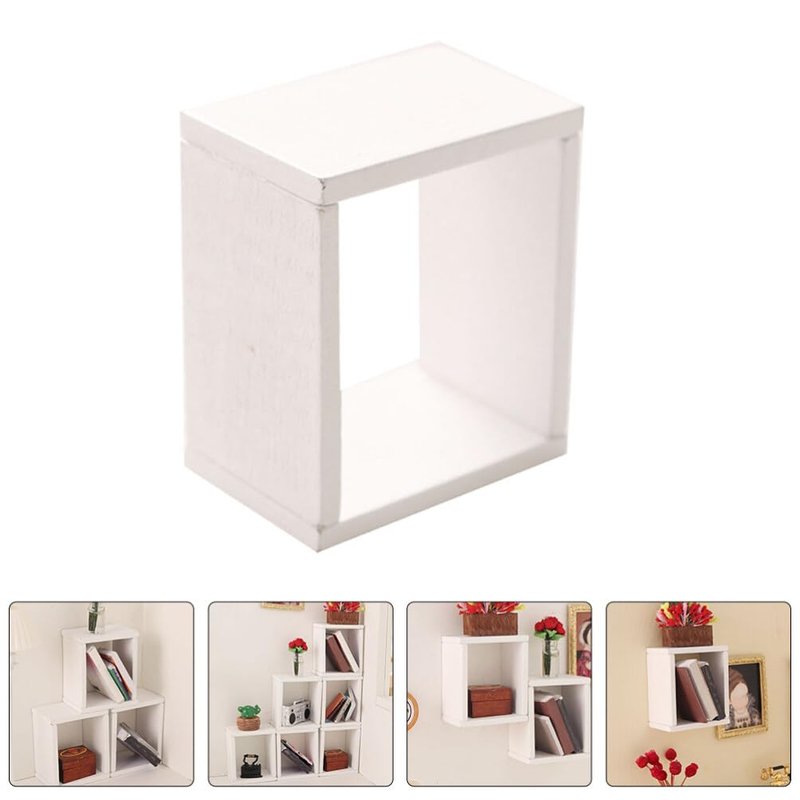 Dollhouse Miniature Storage Rack Floating Shelves Doll House Wall Rack Bookshelf Display Dollhouse Furniture Accessories White