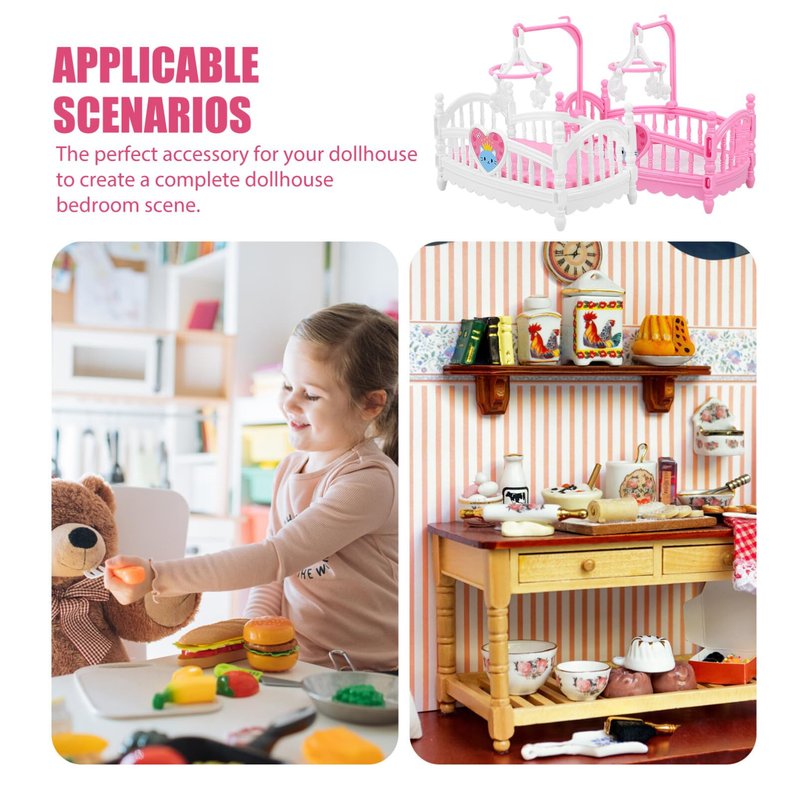 TOYANDONA Dollhouse Crib 2pcs Mini Doll, Miniature Doll Beds with Mobile for Mini House Furniture Set Miniature Dollhouse Furniture Accessories Model Decoration