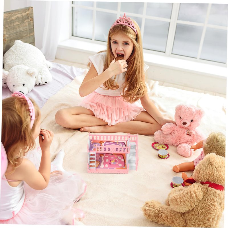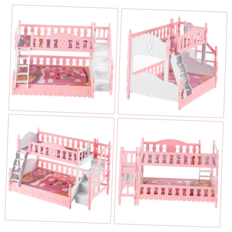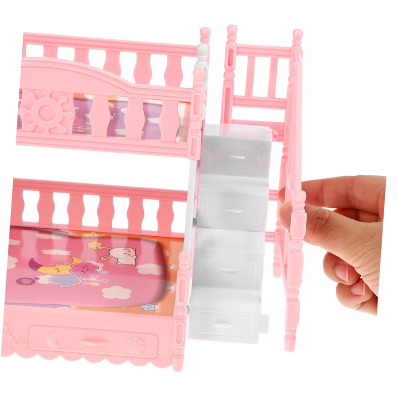 - ๐๐ใDollhouse Loft Bedใ๐ก๐--Doll Bunk Bed, Baby Doll Crib Wooden Doll Bed Cradle for Dolls Furniture Toy with Bedding,Fits Dolls Bed. Made of Plastic Material, The Bunk Bed Model, Mini House Decoration Has Unique Shapes and Simple Color, Which Look Lovely.