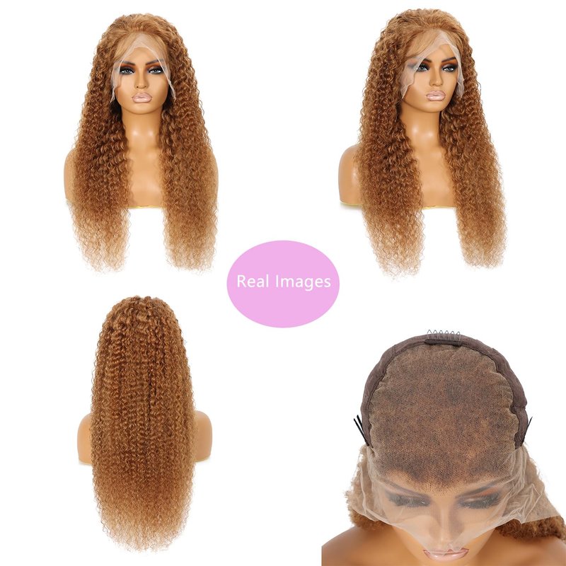 - Honey Blonde Curly Lace Front Wig Human Hair Material: Honey Blonde Human Hair Wig, Cut from Young Girl, Honey Blonde Curly Lace Front Wig Human Hair is Virgin Cuticles Aligned with Unprocessed Human Hair Cut from Young Girl, No Animal, No Blend, No Dry End, Blonde Lace Front Wigs Human Hair, Very Soft and Bouncy, Ture to Length.