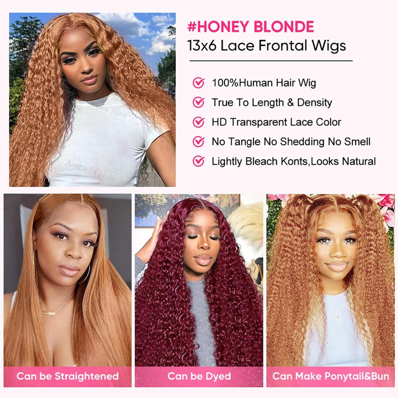 - Honey Blonde Lace Front Wigs Human Hair Quality: Honey Blonde HD Lace Front Wig Human Hair Pre Plucked with Baby Hair,The HD Lace, with Its Soft Texture and Seamless Fit, Blends Effortlessly with Your Skin, Honey Blonde Deeep Wave Lace Front Wigs Human Hair Pre Plucked with Baby Hair,13x6 Lace Size, Honey Blonde wig, Can Be Dyed & Bleached, Curled, and Restyled as Your Own Hair,