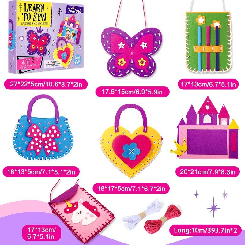 Toylink First Sewing Kit for Kids Beginners Arts Crafts for Girls Ages 4 5 6 7 8 Learn to Sew Unicorn Purse Bags Picture Frame Pen Holder DIY Felt Craft Kits Toddler Gifts