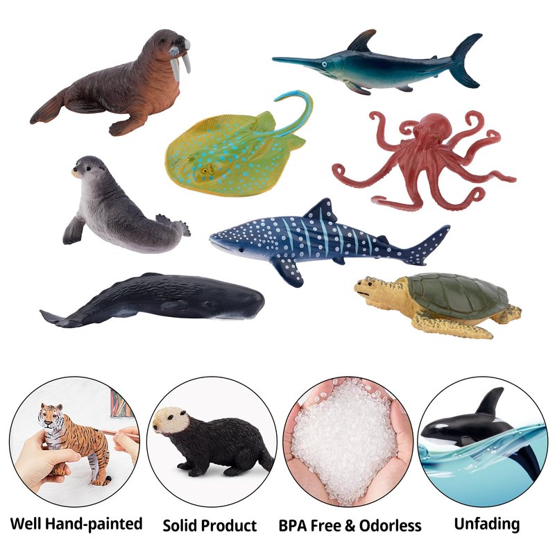 - ✔ REALISTIC EMULATIONAL DETAILS - This sea animal figures set was made by hand painted with high realistically detailed appearance, cute face and childish eyes. Their uniquely molded textures and richly painted details make the animals vivid. Children would like to spend more time to observe and play with them.