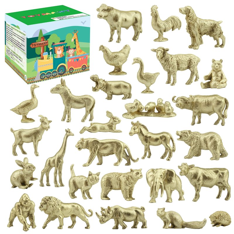 Toymany 28 Pcs 0.6-2.5" Gold Animal Figurines Toys, Farm Animal Figures and Zoo Safari Animal Figures for Cake Toppers Birthday Christmas Party for Kids