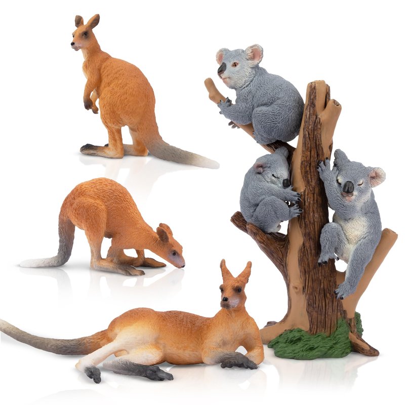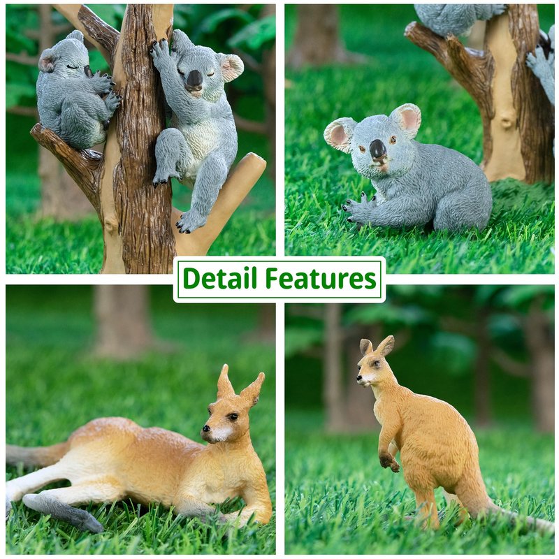 - ✔【Australian Animal Figurines Set 】: Includes 3 Kangaroo figurines,3 Koala figurines and 1 tree, 7 pcs in total. Let your children to easily learn about the Australian Animal world at home, and at the same time raise their awareness of nature.