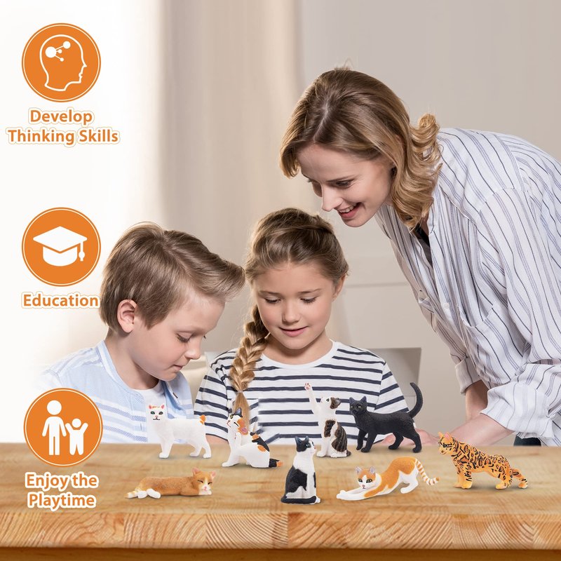 - ✔ EDUCATIONAL ANIMALS PLAYSET - These were great for education purposes, creative play, cat party favors, school projects, baby shower and crafts. It will help to improve children's concentration and outsight, develop and train their imagination and creativity. Parents can tell the children stories about the information of the animals or the happy life of the animal family, it will improve the parent-child relationship.