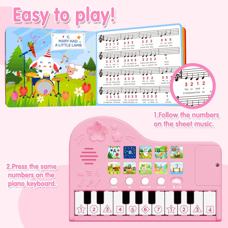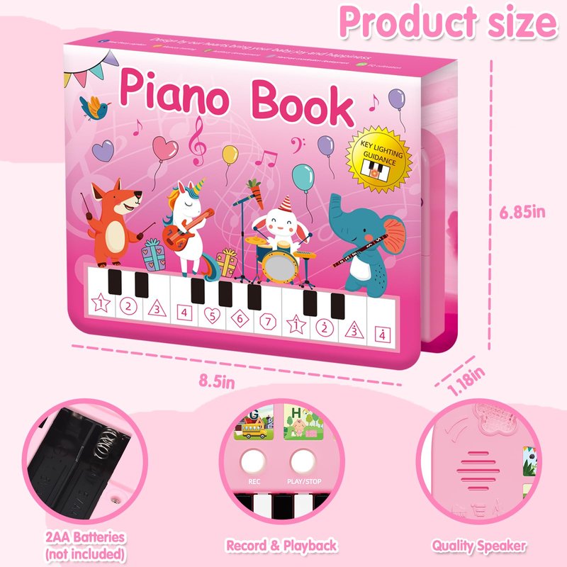 - EDUCATIONAL MUSIC TOYS: It is made of high-quality ABS material, with fine workmanship and smooth edge design. The piano keys are specially designed for the little fingers. Perfect 3 4 5 year old girl gifts. An interactive and portable book sized piano for little music lovers, each step is carefully designed to make it easy for children to get started. Our piano book realizes one-on-one guidance and enhances the learning effect.