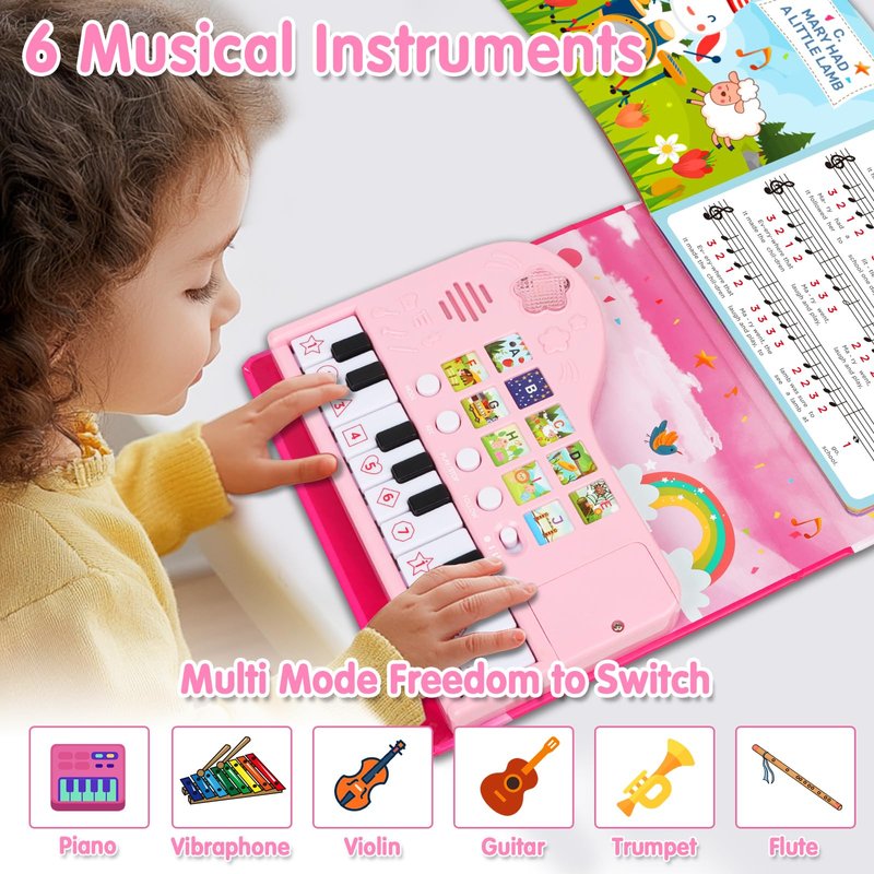 - MULTIFUNCTIONAL TODDLER TOYS: The kids piano book includes an illustrated songbook with color-coded key chart with 10 Songs & 6 Musical Instruments (piano, vibraphone, violin, guitar, trumpet, flute). Learning piano has never been so easy! Intended for preschoolers and early learners of ages 3 and up. Ideal piano for kids ages 3-5, 3 year old girl birthday gift.