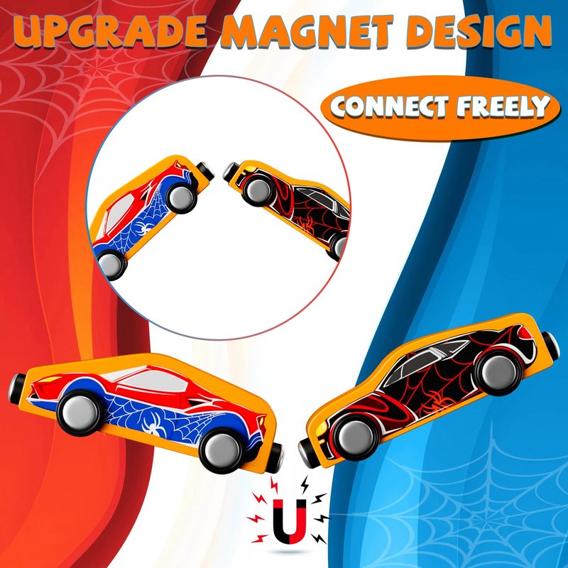 - 【11-Piece Montessori Car Toy Set】-- This cool set includes an engine and train cars with superhero numbered 0 to 10, plus a storage bag for outdoor play. Perfect for toddlers, with magnetic connections and a durable design for hours of fun and learning!!!