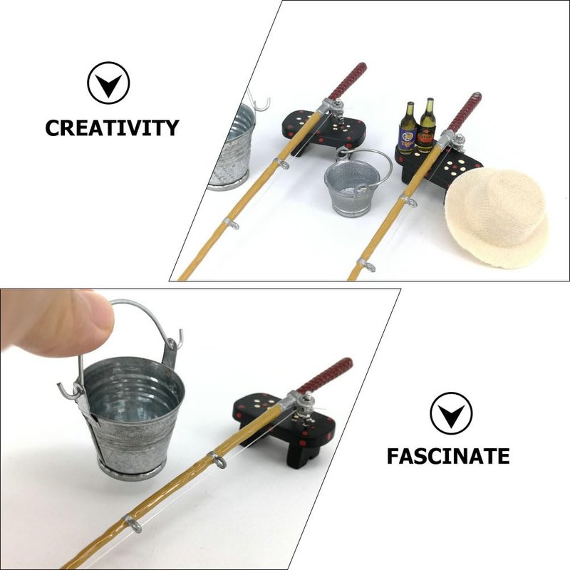 Toyvian 1 Set Simulation Fishing Tackle Ornaments Doll House Child Metal Toy Fisherman Small Plastic Toys