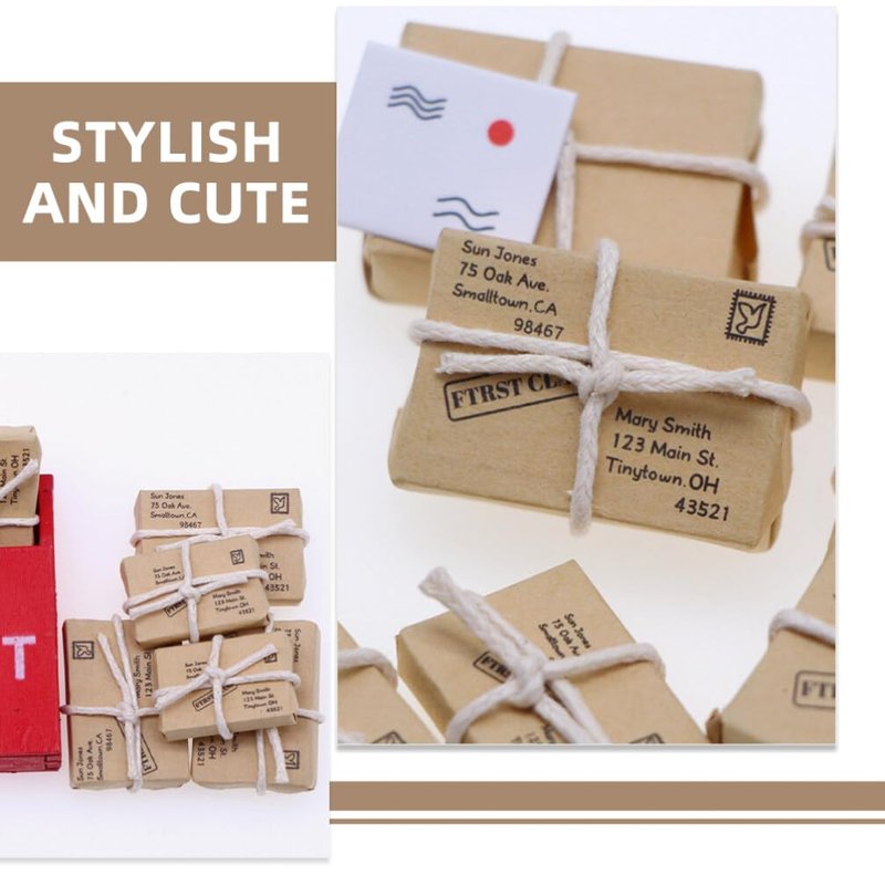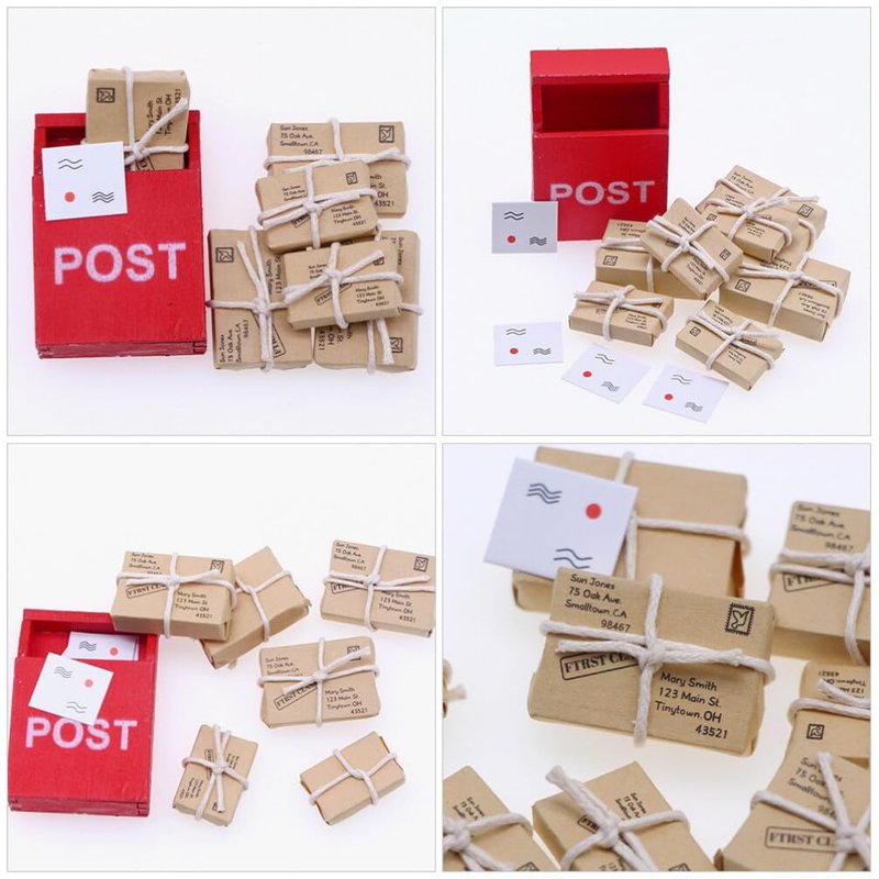 This small mailbox with parcels for mini house decoration, small and exquisite. The tiny mailbox model is made of good paper and wood materials, looks more real and interesting. Light weight, reasonable size, easy to carry and store.