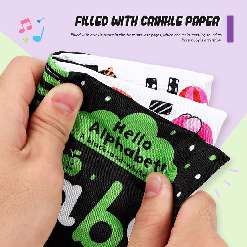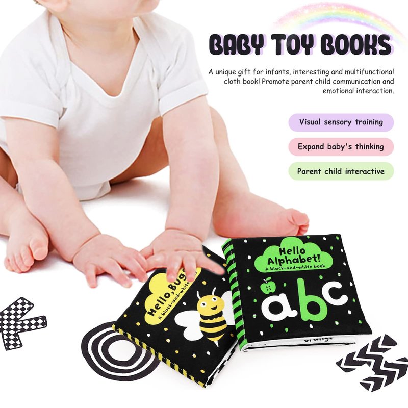 Toyvian 2 Pcs Baby Soft Cloth Book, Black and White High Contrast Baby Activity Crinkle Books Early Educational Learning Toys for 0 3 6 9 12 Months Newborn Infants Babies Boys and Girls