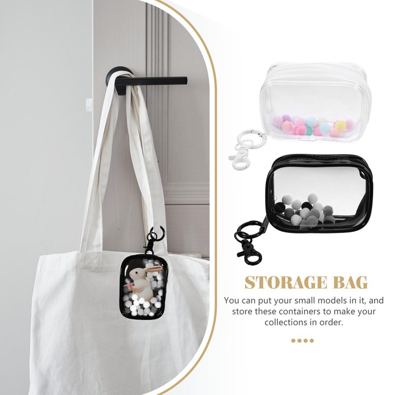 Toyvian 2pcs Small Doll Storage Bags Action Figures Display Clear Bag with Keychain, Zipper Organizer Hanging Collectibles Box for Mini Dolls Figures, 3.73x2.44inches