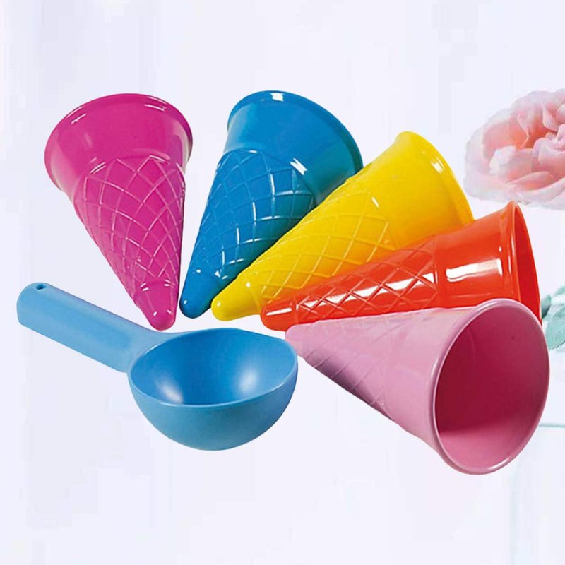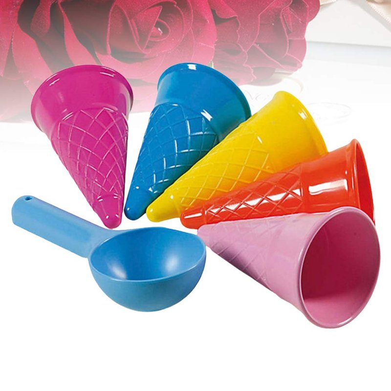 - 6pcs Beach Sand Toys, Sand Ice Cream Molds Set, Ice Cream Sand Toys, Plastic Ice Cream Cones Scoop for Kids Beach Toys ( Random Color )