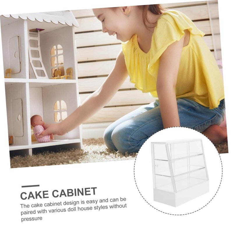 -This cake cabinet is safe for children to use, as it is made with good materials, ensuring that your child can play with it without any worries doll house mini display cabinet.