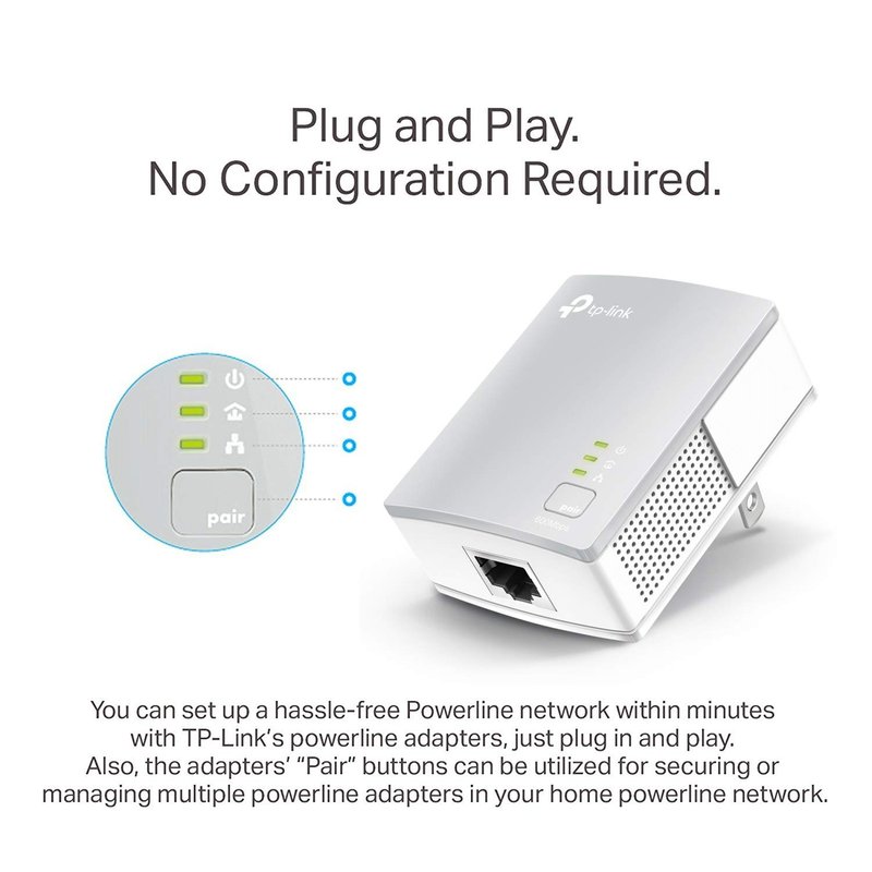 - Plug and Play: No new wires and no configuration required; Step 1: connect 1 adapter to your router. Step 2: plug in another Powerline adapter wherever you need wired internet service.