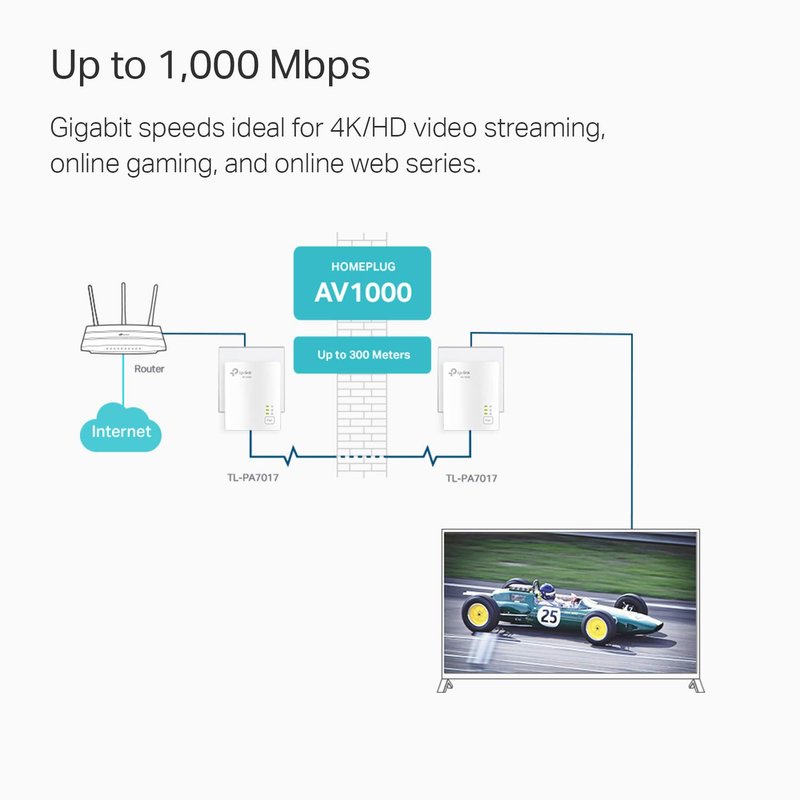 - HomePlug AV2 Standard - high-speed data transfer rates of up to 1000 Mbps, supporting all your online needs