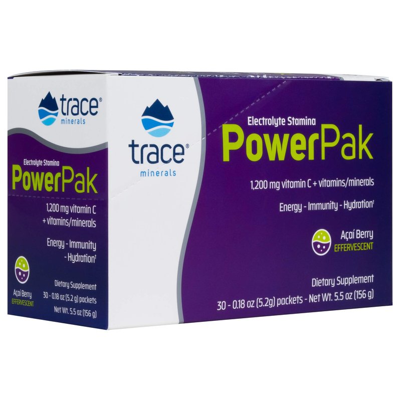 Trace Minerals | Power Pak Electrolyte Powder Packets | 1200 mg Vitamin C, Zinc, Magnesium | Boost Immunity, Hydration and Natural Energy | Acai Berry | 30 Packets