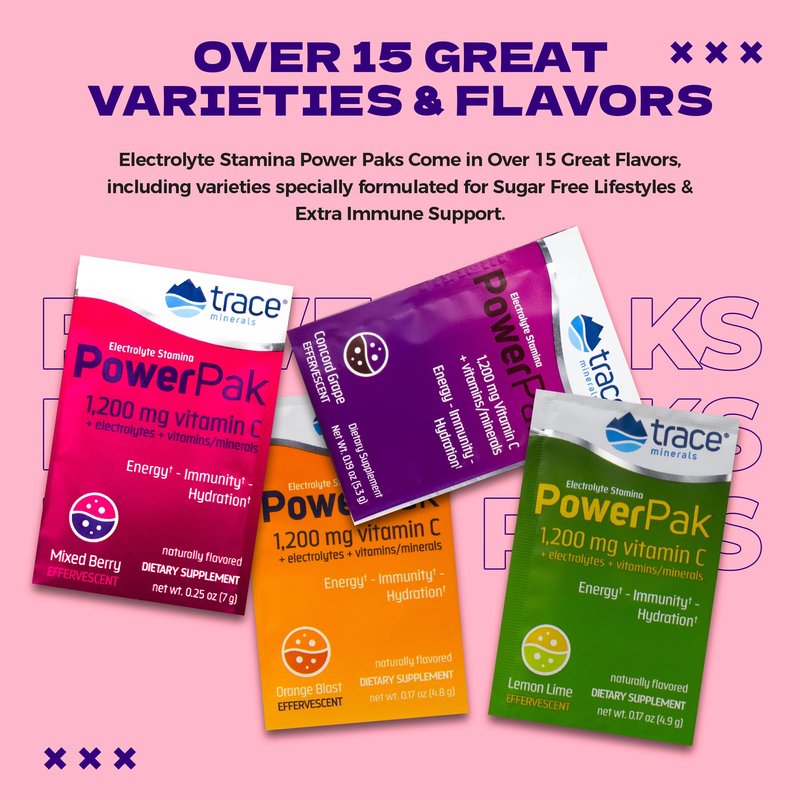 Trace Minerals | Power Pak Electrolyte Powder Packets | 1200 mg Vitamin C, Zinc, Magnesium | Boost Immunity, Hydration and Natural Energy | Mixed Berry | 30 Packets