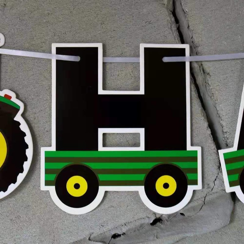 - SIZE:The Tractor Happy Birthday Banner Flags Made With Premium Paper, Each Flag Dimension: 4.8" (W)*5.1" (H),The Whole Banner: 3.0 M(120") Long, a little assembly needed for the banner