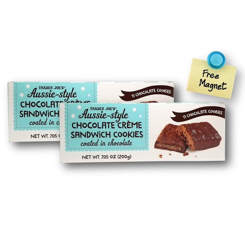 Trader Joe's Aussie-Style Chocolate Creme Sandwich Cookies 7.05 Oz. X 2 with 1 Bonus Colorful Round Refrigerator Magnet