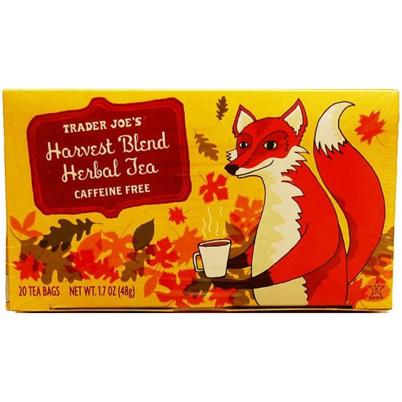 A fox enjoying a cup of tea? Of course. It happens all the time. If that tea is Trader Joe's Harvest Blend Herbal Tea - a blend of cinnamon, ginger, hibiscus, chamomile, roasted chicory, orange peel and apple flavor. Your unbridled joy with each sip, will make you feel like a fox in the hen house. Or a wise owl who's just discovered the secret to eternal happiness. That's right...all in a simple cup of tea.