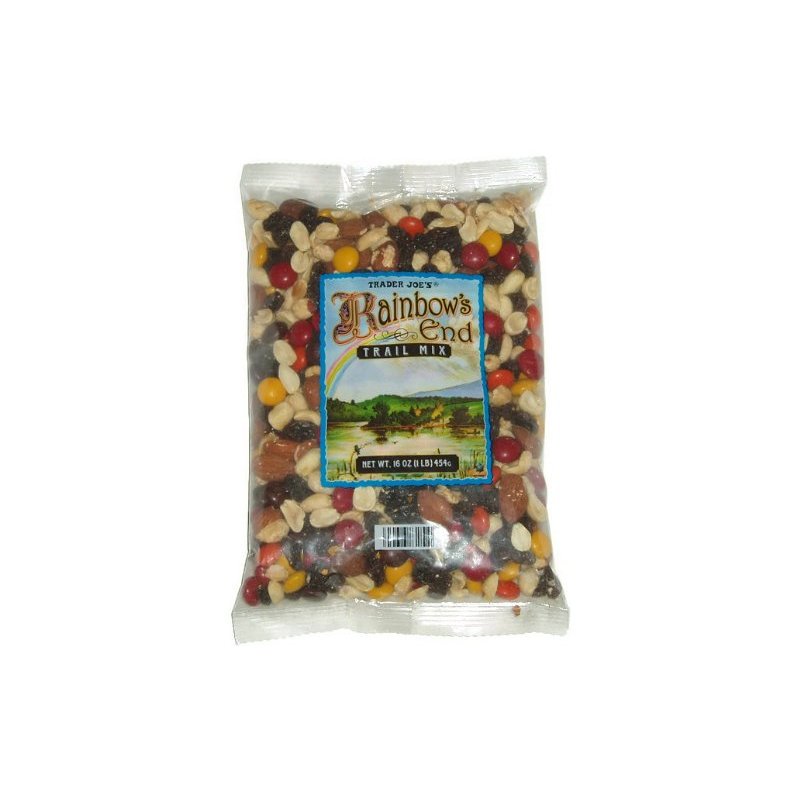One (1) - 16 oz. package Trader Joe's Rainbow's End Trail Mix with candy coated chocolate, dry roasted peanuts, raisins, and dry roasted almonds. Made on shared equipment with wheat & other tree nuts.