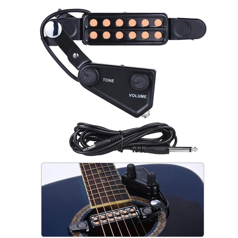 - Acoustic guitar pickup with 12-hole magnetic transducer, can capture vibrations quickly.