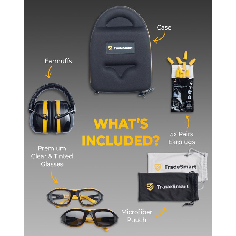 TradeSmart All-in-One Shooting Ear Protection - Comfort+ NRR 28 Earmuffs, Glasses & Earplugs + Carry Case