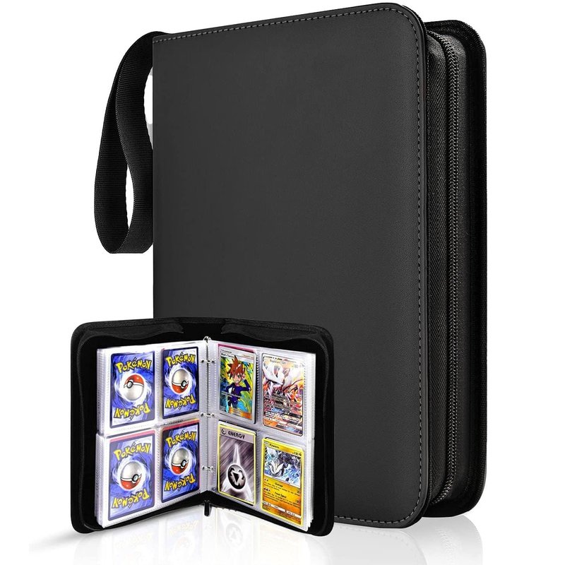 Trading Card Binder 4 Pocket,400 Pockets Card Binder for Pokemon Cards with Zipper,50 Sleeves Card Holder Compatible with Standard Card,Sport Card,Game Card-Gift for Boy and Girl(4-Pockets, Black)