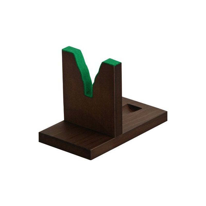 A good looking and convenient way to display and load your cap and ball revolver. Pistol grip rests securely in wooden base while feltlined wooden upright support back strap securely. Positions cylinder to rotate and face upward for easy loading. Loading stand collapses for easy storage. Fits 1851 1860 and 1858 revolvers.