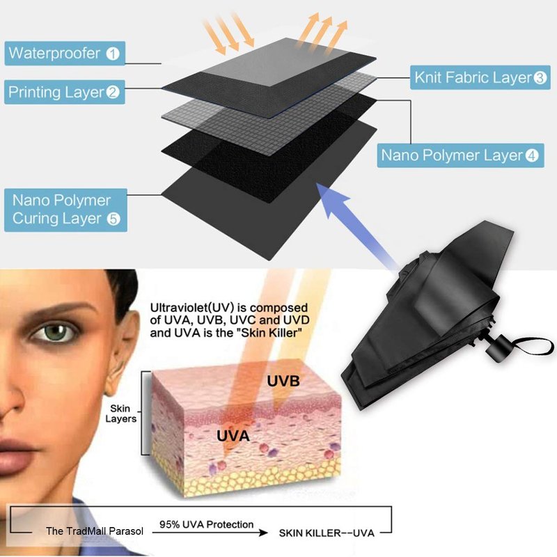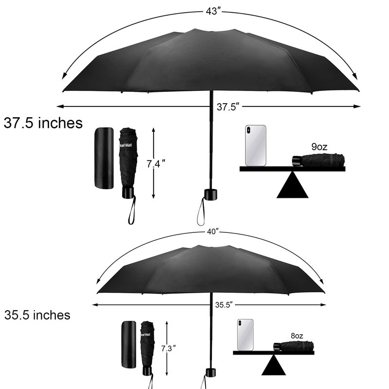 TradMall Mini Travel Umbrella, Portable Lightweight Compact Parasol with 95% UV Protection for Sun & Rain, Black