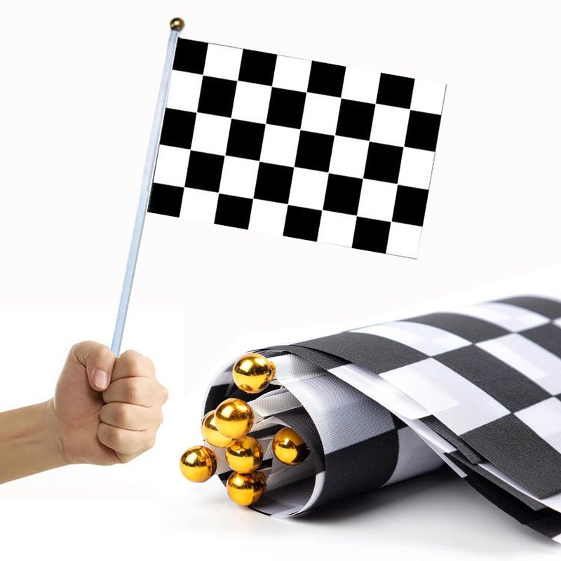 - SIZE-The size of the black and white checkered flags is 8" x 5.5",plastic sticks is 12" .Traffic Cones measures 7” Height x 5.5”.