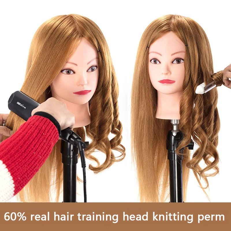 - Training dummy head 60% Real Hair Professional Cosmetology Mannequin Manikin Dolls Head, Styling Model for Hairdresser Hair set includes small desktop stand (yellow)