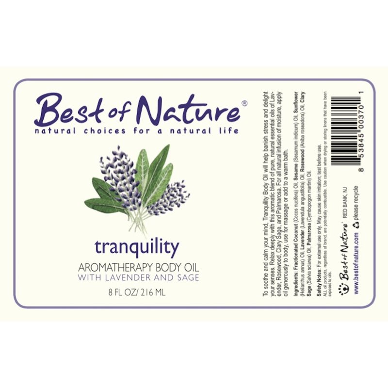 Best of Nature's Tranquility Blend Massage & Body Oil will help you relax deeply with this aromatic blend of pure, natural essential oils of Lavender, Rosewood, Clary Sage and Palmarosa. For all natural infusion of moisture, apply oil generously to body, use for massage or add to a warm bath. Clary sage (Salvia sclarea) is a flowering herb that’s native to the Mediterranean Basin. It has a clean, refreshing scent that you can use as a skin balm or gently inhale as part of an aromatherapy treatment. It’s usually cultivated for its use as a flavoring in tea, and also known by the names “clear eye” and “eye bright” because of its traditional use when addressing eye health. Lavender is well known for its ability to be soothing and relaxing. French Lavender has been used both cosmetically and therapeutically for centuries because of its powerful properties. Today, lavender oil benefits for your body include benefits for calming & relaxation, energizing, soothing skin irritation, improving skin complexion, deodorizing and so much more. Palmarosa is a sweet smelling grass that has a scent similar to that of the rose flower. It is often used in aromatherapy as a means of reducing stress levels. Rosewood oil is extracted from an evergreen tree that's indigenous to Peru and Brazil. It is a member of the laurel (Lauraceae) plant family along with camphor, cinnamon, bay and cassia. It has a characteristic aroma that's warm, spicy, woody, fruity, floral and enlivening.