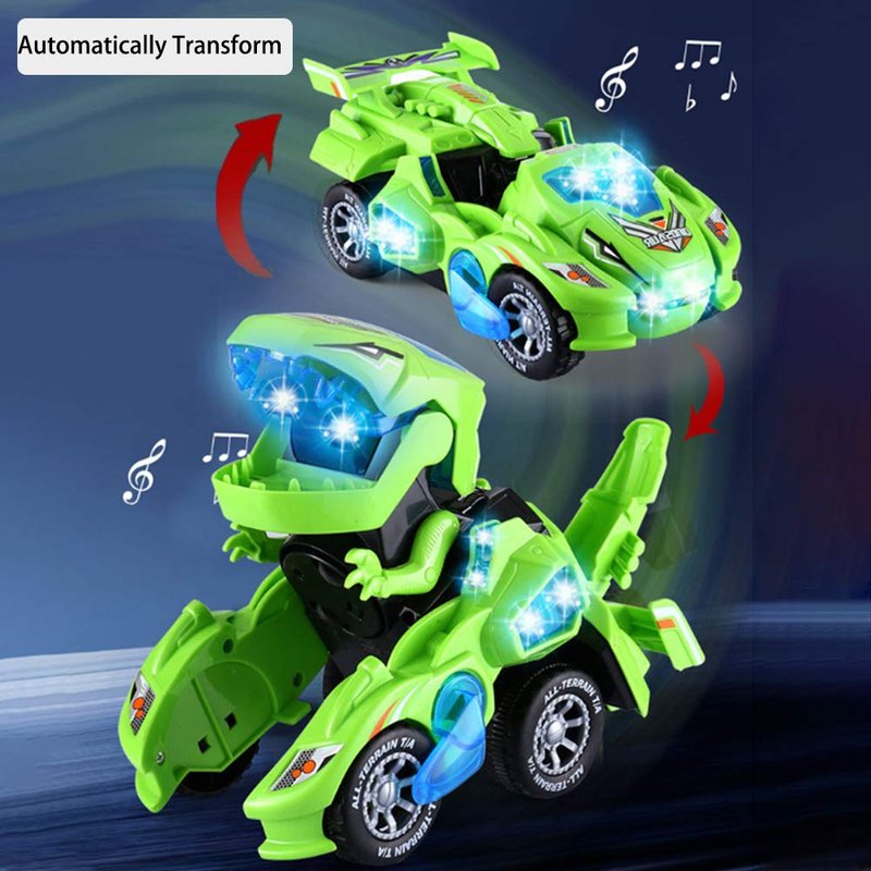Cool Lights and Music: Dinosaur toys transformer with LED lights and music will make amazing sounds and colorful light effects. After driving for a while, the car automatically transforms into a dinosaur, then changes back into the car, going on driving, giving kids an amazing feeling.