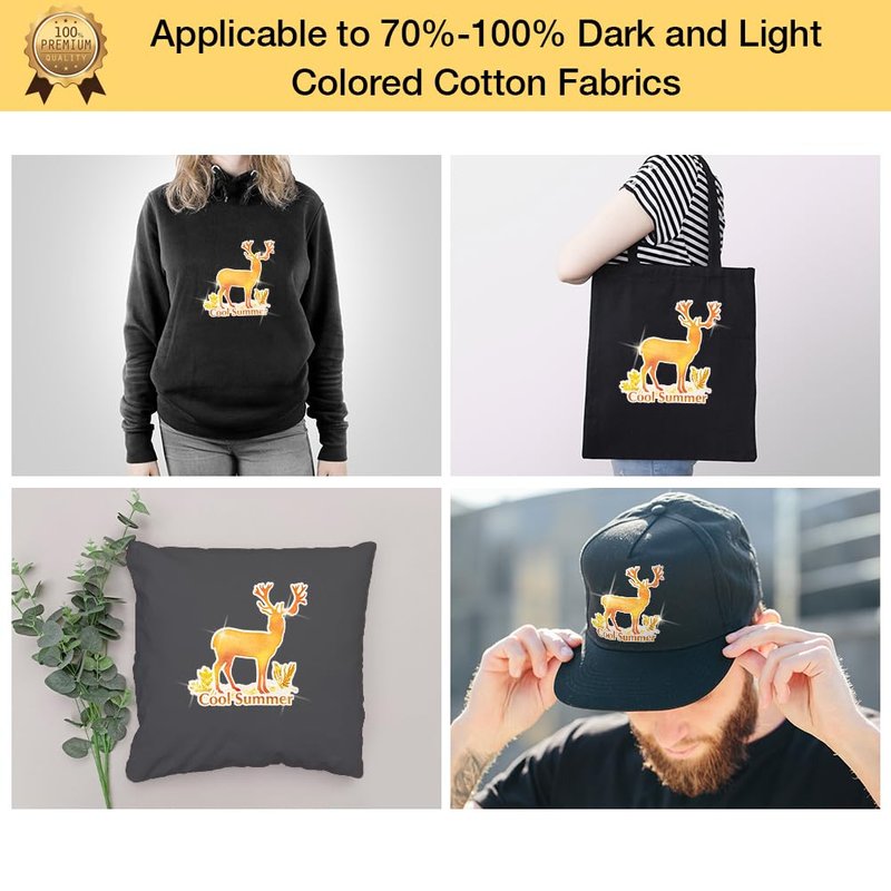 - 💕APPLICATIONS: Transfer text, images, photos and pictures onto both Light and Dark color cotton fabrics, such as sweatshirts, hoodies, totes, canvas bags, aprons, masks, pillow cases, cushion covers, tablecloths, and flags. 100% cotton fabrics are recommended. For poly blend cotton or other fabrics, please do a test first.Make custom DIY gifts to your friends or your family on Mother's Day, Father's Day, Birthday, Thanksgiving, Easter, Halloween, Christmas, Valentine's Day or Wedding Day.