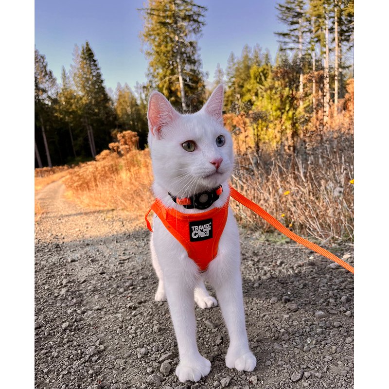 Cat Lovers Unite! Like many of you, we are inspired by our cats. After rescuing our first cat Andie from an abandoned backyard, we became “cat people” pretty much overnight. We wanted to take him with us during our travels so we launched this company in New York City shortly after. “The True Adventurer” Reflective Cat Harness and Leash Set for Adventure Cats Adventure cats & kitties need a safe and secure harness for all their travels. Specially designed for cats! That’s why we designed this premium cat harness and leash set with all the best features, so you and your pet can confidently step outside and enjoy the great outdoors together. Breathable, Secure and Snug Fit Our adjustable harness is made with strong, breathable mesh fabric so your cat stays comfortably secure in it. You’ll have no worries about their escaping because the buckles are built to stay put! Premium Safety Features Each harness has a reflective strip across the body so your cat can be seen from afar, even when it starts to get dark. The leash is made of extremely durable nylon to prevent escape, and it comes with a 360-degree rotating snap clip so it can adjust to your cat’s movements. Delightful Colors and Perfect Sizes Our harnesses come in four colors to suit your cat’s paw-sonality: Black, Grey, Orange and Red. To choose the best size, measure around their chest snugly, down past all the fur to ensure a secure fit. The straps are still adjustable, so it’s okay to pick one size bigger if your kitty is still growing! (Please Note: The X-SMALL size is for very young kittens only.)