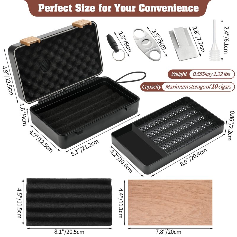 - PROTECT YOUR CIGAR:Protect your cigar – anti extrusion, waterproof, sealed ABS plastic design, (the shell can float in the water) two solid locks, the best protection against lifting. The built-in two-layer independent cigar storage space and independent accessory storage space can completely protect your cigars and other cigar accessories.