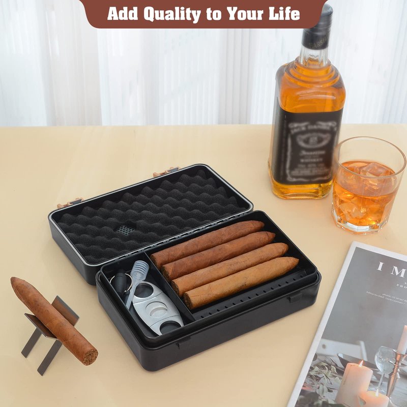 ABUNDANT CIGAR ACCESSORIES, 1cigar Cutter,1cigar Stand, 1 Cigar Puncher mobile And Great For Travel With A String Handle Attached For When You’re On The Go.Travel cigar humidor comes with Spanish cedar paper to add fragrance.