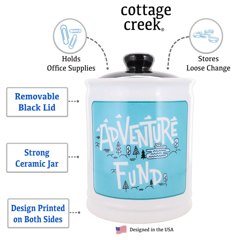 Get ready for your next adventure with our unique 'Adventure Fund' piggy bank! This elegantly designed ceramic decorative jar serves as the ideal vacation fund, allowing you to save up for your next trip with ease. It's not just a money-saving tool, but also a stylish piece of home decor, fitting well in your bedroom or living room. It also doubles as a candy jar, adding a sweet touch to your space. Made from outstanding ceramic construction, this Travel Fund adventure piggy bank for adults is a fun way to save for cruise ship essentials, summer outfits for women, beach essentials, pool toys, airplane travel essentials, road trip essentials, and everything for your dream vacation essentials! This travel essential is a must-have for those who love exploring new places and creating unforgettable memories. It's an ideal addition to your beach essentials and road trip essentials, encouraging you to save for your dream summer outfits for women or a pair of Birkenstock sandals women love. But cute jar is not just for travelers. It also makes an amazing gift! Looking for birthday gifts for women or gifts for men who have everything? This could be what you're searching for. The 'Adventure Fund' piggy bank is a thoughtful and practical gift that keeps on giving. It's a great birthday gift, anniversary present, or a unique wedding gift. It's also a fun gift for students planning their summer vacations. Encourage them to save for summer dresses, women's fashion accessories, or even travel size toiletries. This piggy bank is a tangible reminder of their goals, whether it's a trip to the beach, a cruise ship vacation, or any other adventure. So why wait? Start saving for your dream vacation today with our 'Adventure Fund' piggy bank. It's not just a storage container for your loose change. It's a symbol of your next adventure. So grab this travel essential now and start planning your dream vacation adventure. The journey begins with a single coin!